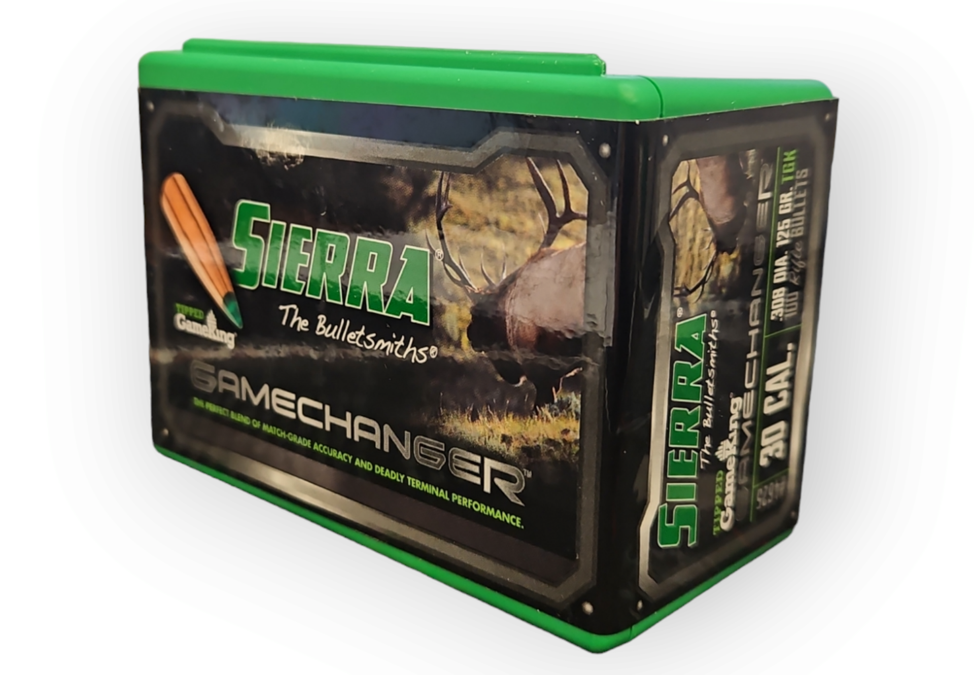 Introducing the Sierra GameChanger hunting bullet: the perfect combination of Sierra’s legendary match accuracy coupled with deadly penetration. Sierra re-engineered their legendary MatchKing bullet into a hollow point design for quick expansion and fitted it with a green tip for ballistic uniformity. Inside, the GameChanger features a unique construction that utlilizes a special lead alloy surrounded by a tough copper jacket that delivers excellent penetration and expansion. It’s a GameChanger on any hunt! This is not loaded ammunition.
