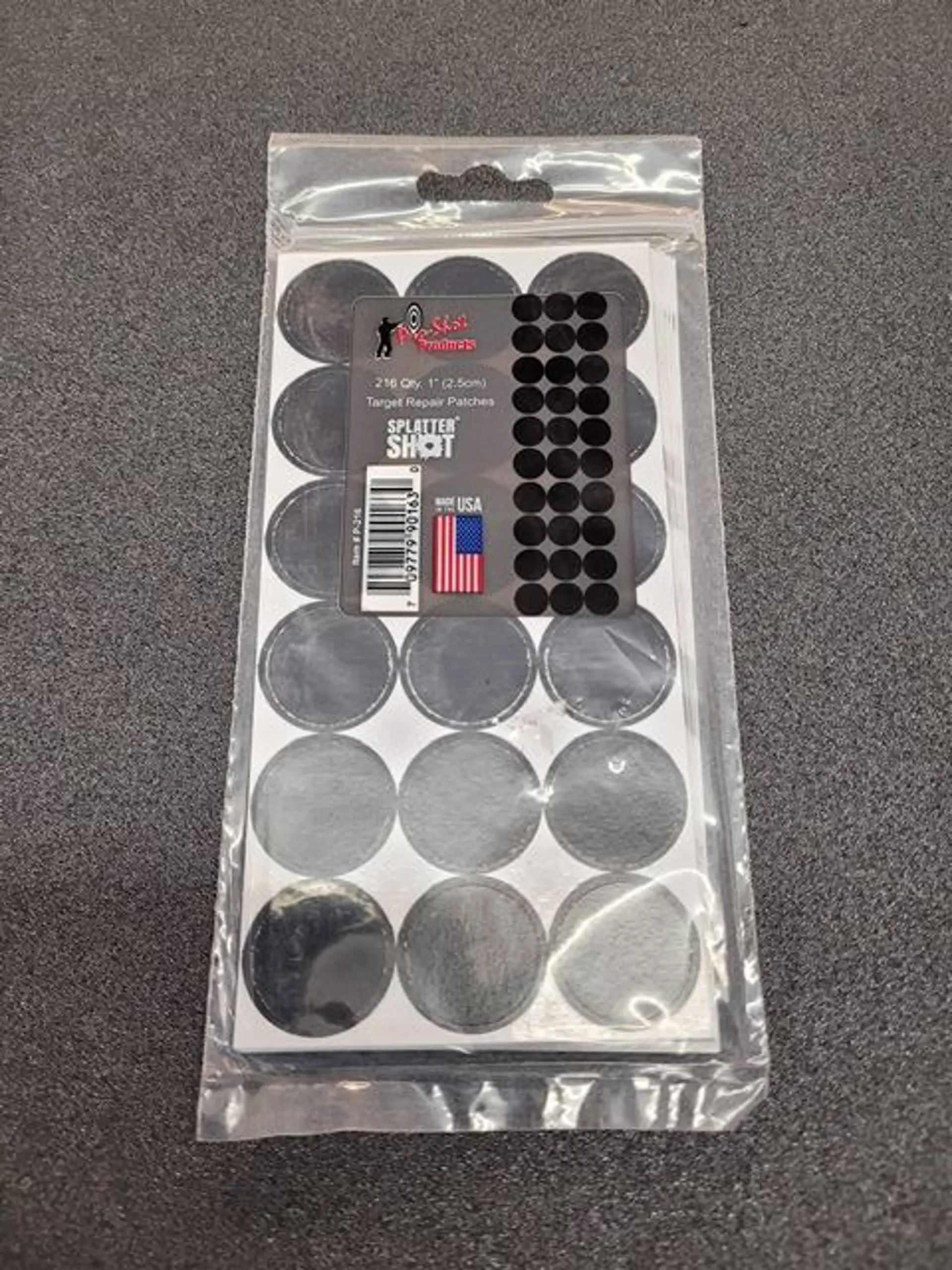 • SUPERIOR ADHESIVE PEEL & STICK PASTERS• 216 BLACK TARGET PASTERS FOR EXTENDED TARGET USE • EXCELLENT FOR USE AS AN AIRGUN & SMALLBORE TARGET • PACKAGED IN ZIPPER TOP BAG• MADE IN USA